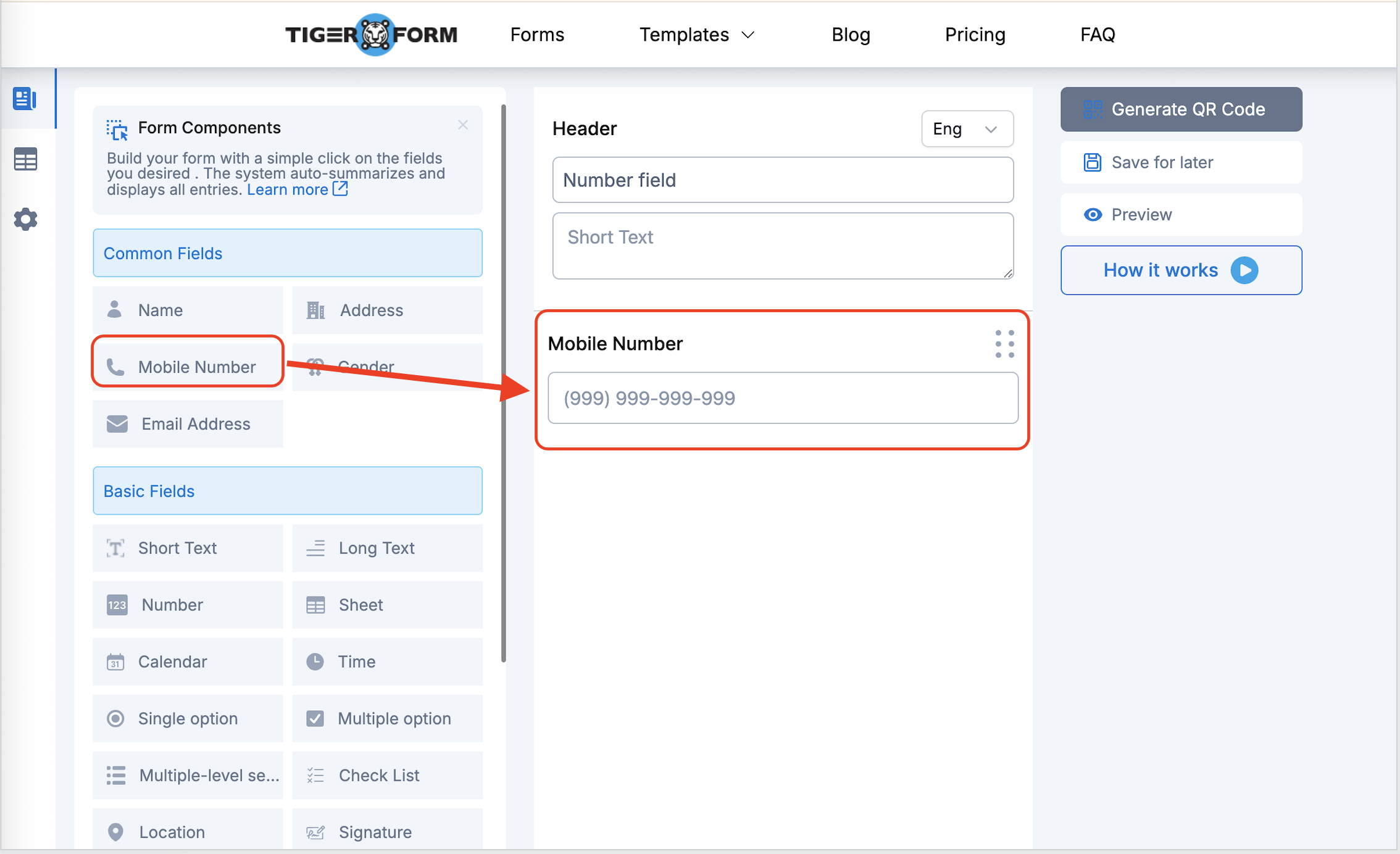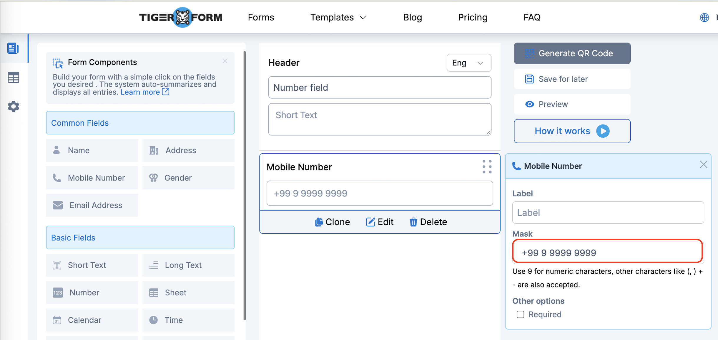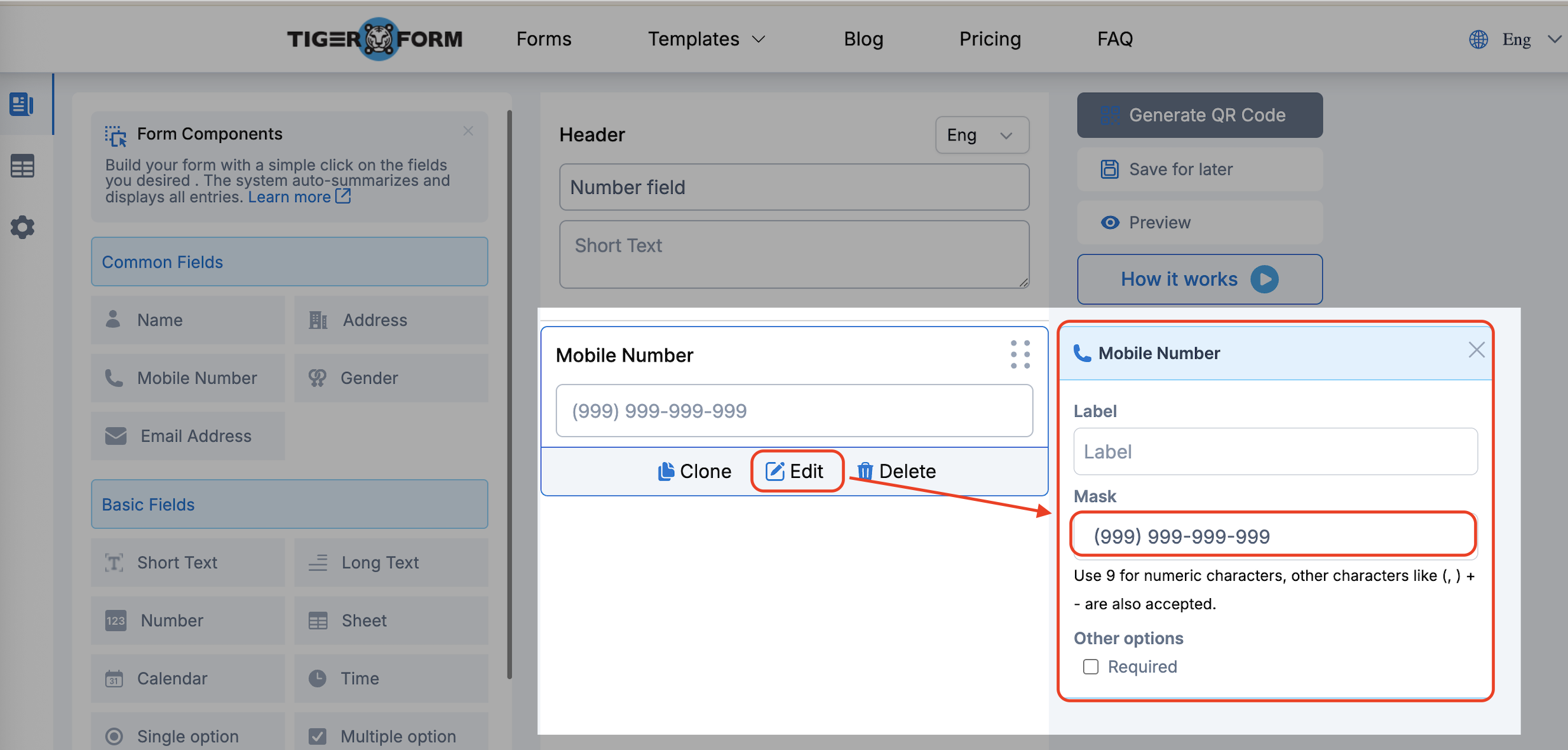 Go to the create form page and choose the Mobile Number field.