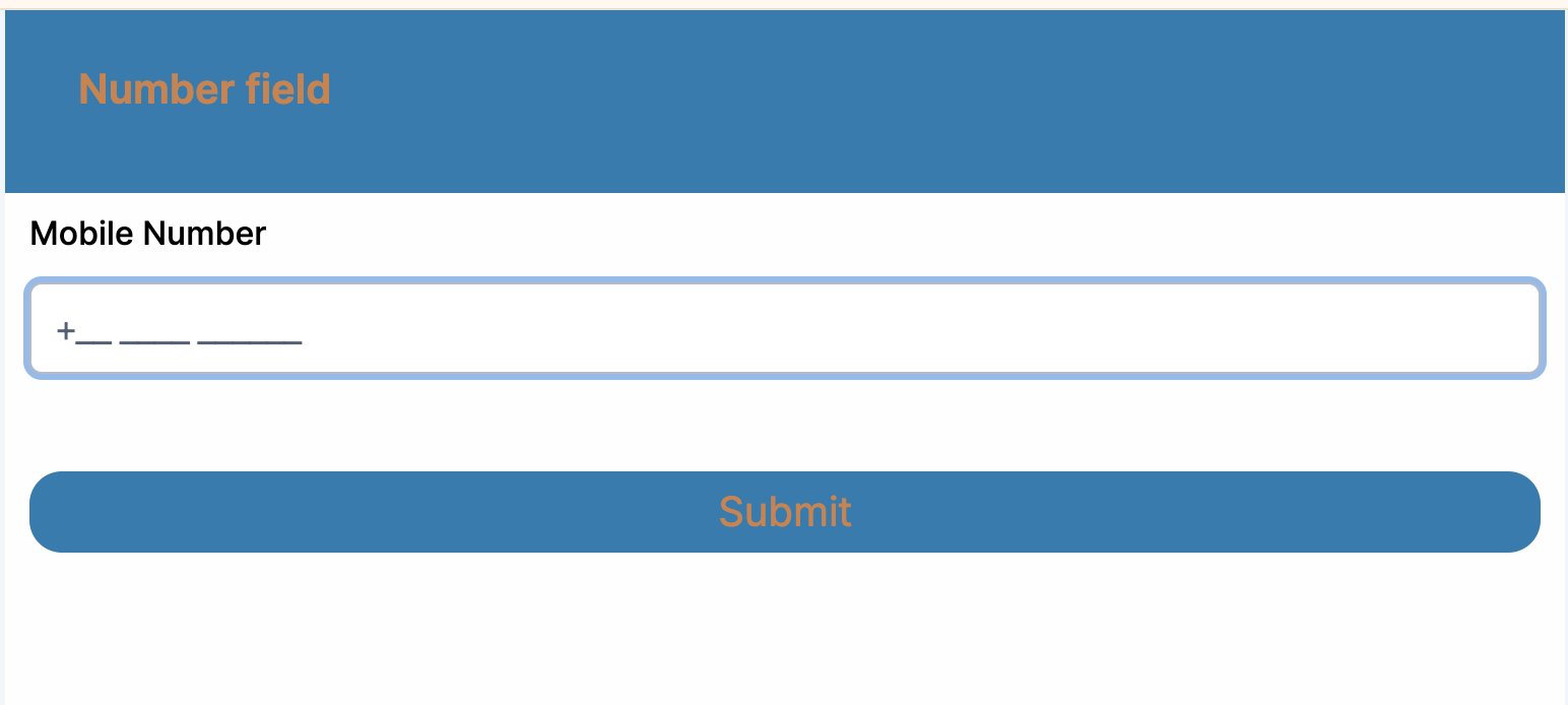 The updated number field should look like this when respondents try to add or submit their mobile number.